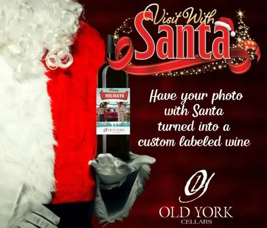 Photos with Santa & Custom Labeled Wine Bottles at Old York Cellars