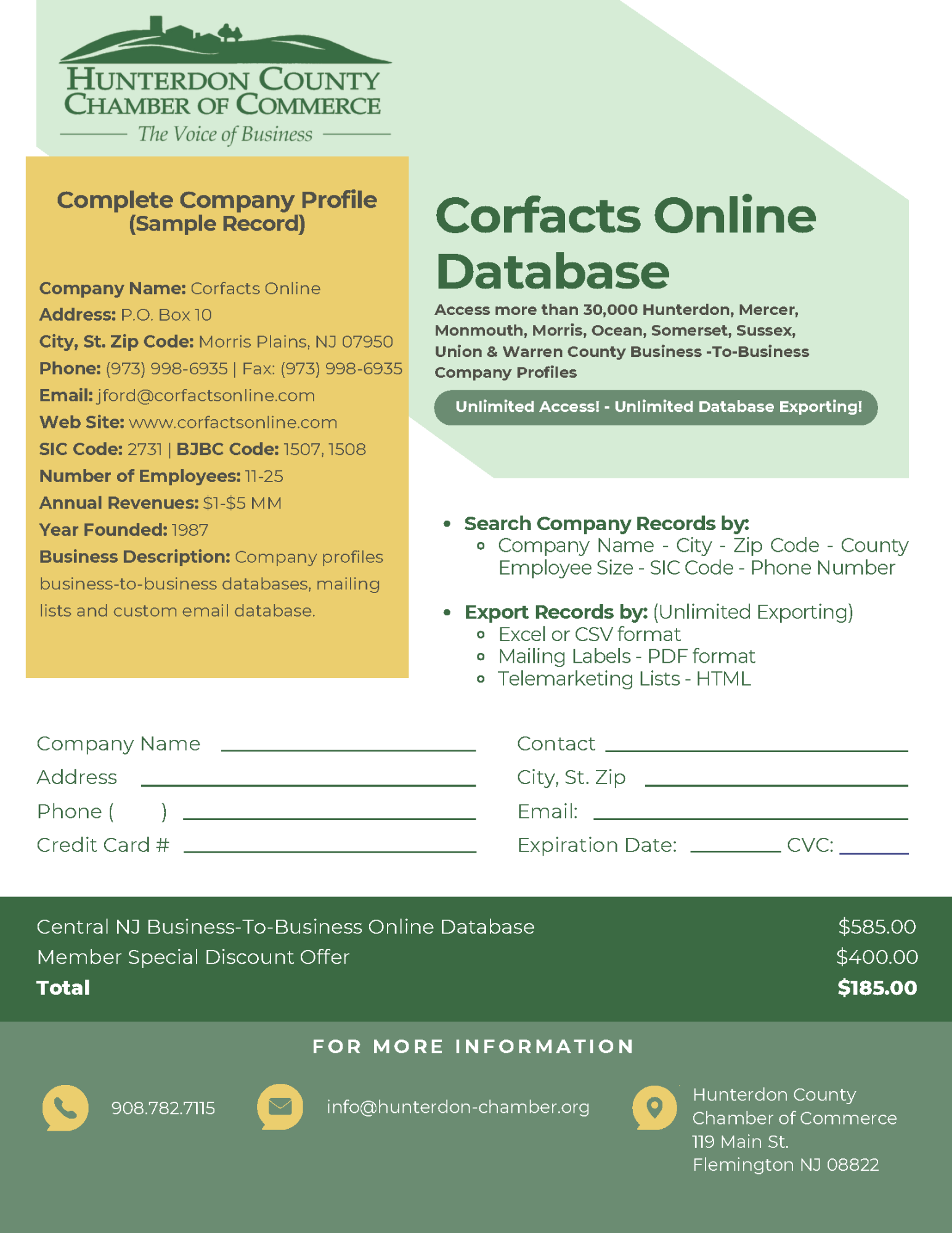 Access more than 30,000 Hunterdon, Mercer, Monmouth, Morris, Ocean, Somerset, Sussex, Union & Warren County Business -To-Business Company Profiles